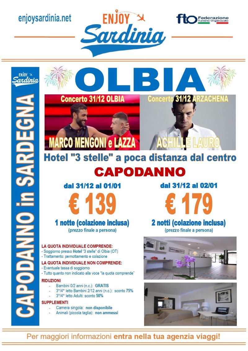 Capodanno OLBIA, low cost, 1 notte o 2 notti, concerto "Marco Mengoni e Lazza"