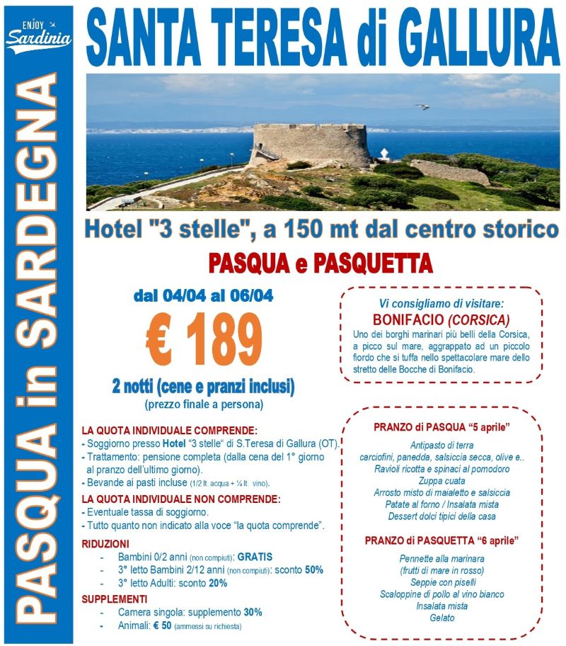 Pasqua e Pasquetta in Sardegna SANTA TERESA di GALLURA