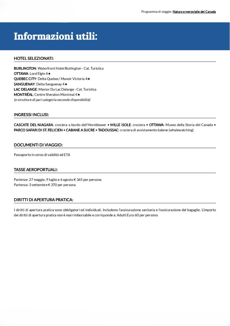 Tour CANADA (natura e meraviglie)