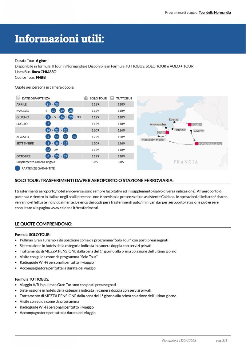 Tour della NORMANDIA (Tutto Bus con pre/post night a Milano)